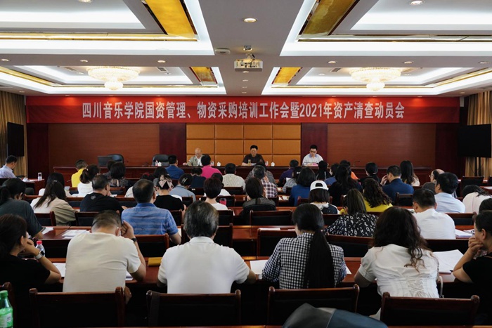 2021年5月13日,学校国资管理、物资采购培训工作会暨2021年资产清查动员会在香樟园五楼会议室召开。学校党委副书记、院长刘立云,省纪委监委驻川音纪检监察组组长、学院党委副书记、纪委书记魏文彪,党委常委、副院长牟文虎出席会议并讲话。各部门、系(院)负责人及国资管理员共120人参加会议。会议由党委常委、副院长牟文虎主持。