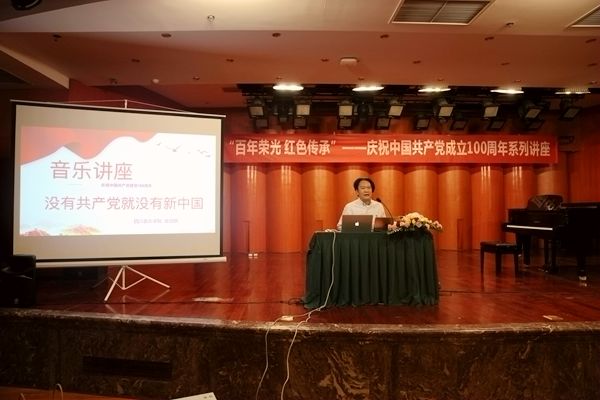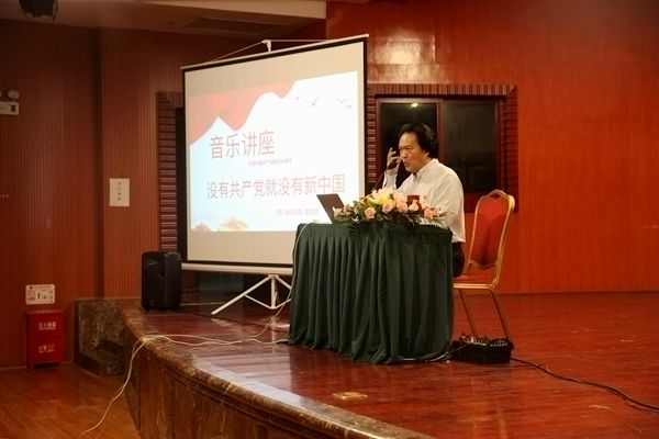 敖昌群教授又详细讲解了《唱支山歌给党听》和《没有共产党就没有新中国》这两首经典歌曲的历史背景和来龙去脉。他强调:在100年波澜壮阔的历史进程中,中国共产党紧紧依靠人民,跨过一道又一道沟坎,取得一个又一个胜利,为中华民族作出了伟大历史贡献。共产党团结带领人民在这片古老的土地上,书写了人类发展史上的壮丽史诗,一个生机盎然的社会主义中国巍然屹立在世界东方。历史充分证明,只有中国共产党,才能救中国;只有中国共产党,才能发展中国。