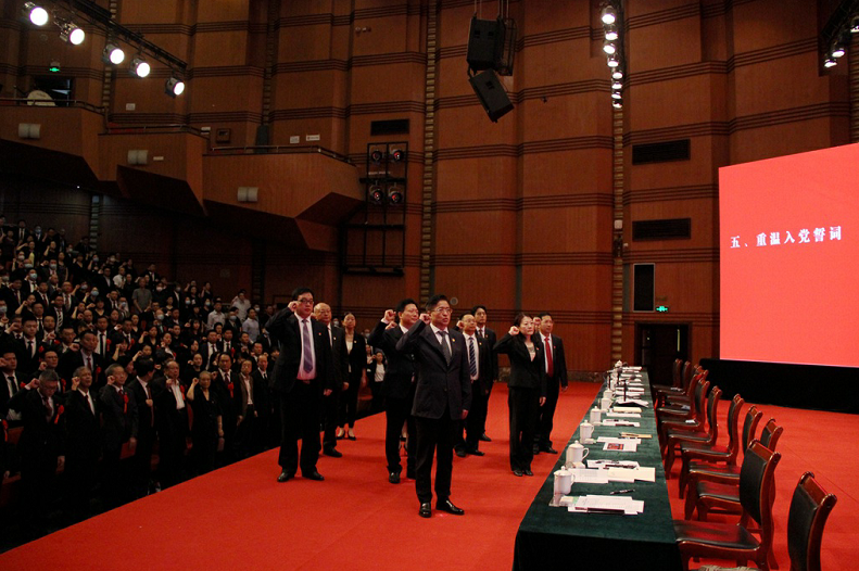 上午9点30分,大音乐厅灯光璀璨,金灿灿的党徽高悬在主席台帷幕正中央,格外醒目,10面鲜艳的红旗分立两侧,会场气氛庄重而热烈。