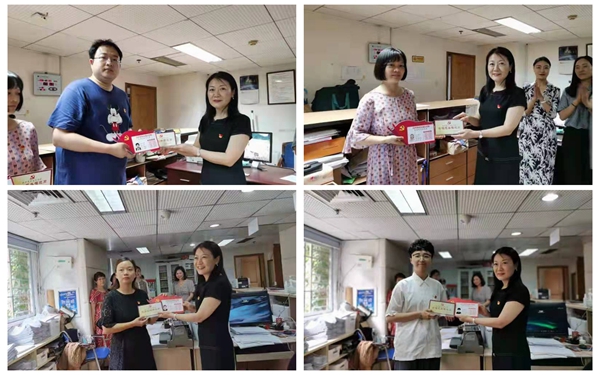 6月30日党委副书记侯钫同志代表学院党委深入基层一线,为部分窗口服务部门党员先锋示范岗培育对象授牌。授牌仪式上,党委常委、组织部部长刘芸秀同志宣读了《伟德bv国际体育共产党员示范活动创建结果的通知》,侯书记为计财处、教务处等4名示范岗培育对象代表分别颁发了“管理服务模范岗”、“改革创新示范岗”岗牌,并向他们所在基层部门的全体党员介绍了此次创建党员示范岗的意义和目的。侯书记指出,设立“共产党员先锋示范岗”旨在使广大师生党员紧紧围绕立德树人的根本任务,在教学教辅科研等服务岗位上充分发挥党员的先锋模范作用,进一步提升教学科研创新能力和管理服务水平,永葆共产党员先进性。六大类党员先锋示范岗将进行动态管理,进行年度成果验收考核,定期评选,强化日常监督,形成常态工作机制。