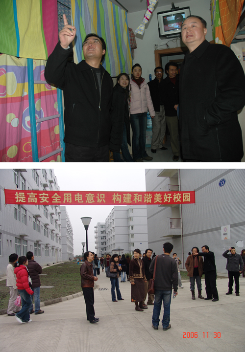 在我院首届“寝室文化艺术节”接近尾声之际,11月30日上午,学院党委副书记彭建辉、副院长张勇、前副院级调研员杨建中、职能部门负责人刘立新、喻濮、刁锡强,各院(系)负责人马一平、徐建祥、安永平、甄志刚、王江、肖斌、杨琳娜、贺洋等同志以及新老校区辅导员近六十人参观了新都校区学生寝室。