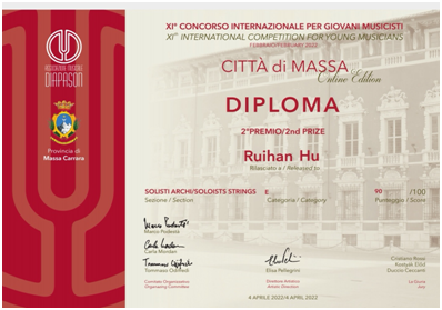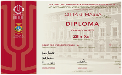 2022年第十一届意大利“CittàdiMassa”国际音乐比赛获得二等奖