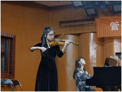 胥子琳 就读于伟德bv国际体育附属中学高一小提琴专业,现师从于李倩教授。在校期间,专业成绩优秀,积极参加附中组织的各项活动,小提琴室内乐和乐团排练以及演出。