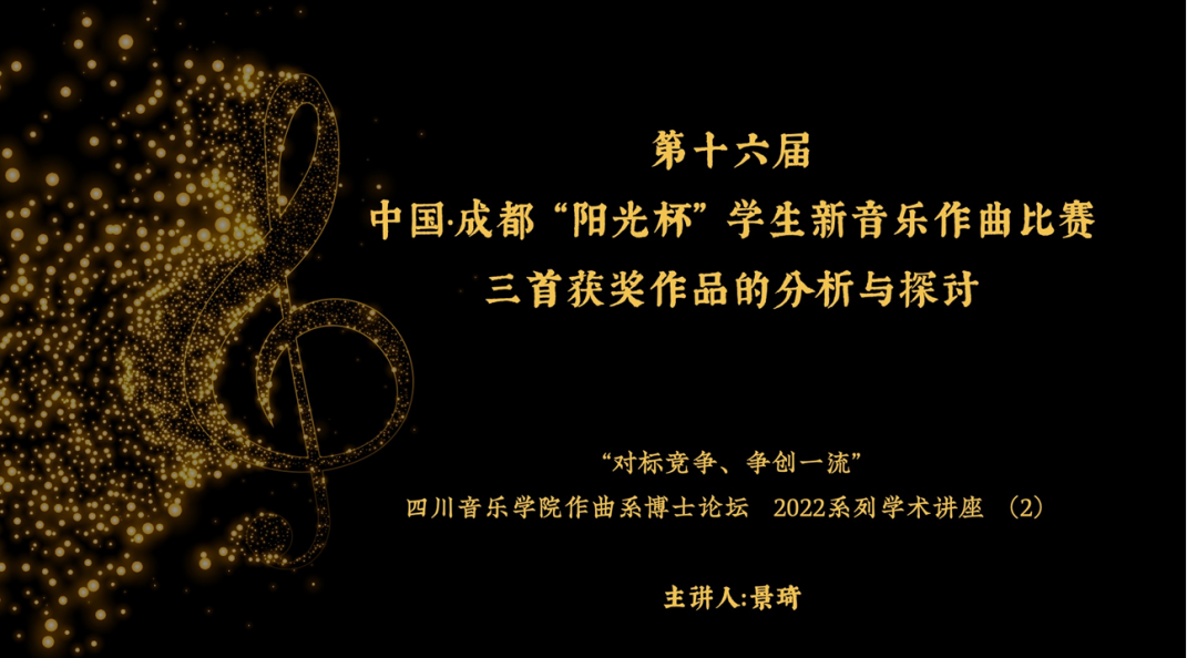 2022年5月13日14:30,伟德bv国际体育作曲系主办的“对标竞进,争创一流”博士论坛系列学术讲座第二期如期举行。讲座在发布预告之后引起广泛关注,并应邀采取了线上与线下并行的方式同时进行。本次讲座以《第十六届中国·成都“阳光杯”学生新音乐作曲比赛获奖作品分析与探讨》为题,由伟德bv国际体育作曲系讲师、引进人才、美国密苏里大学博士景琦老师主讲,作曲系黄旭老师主持。