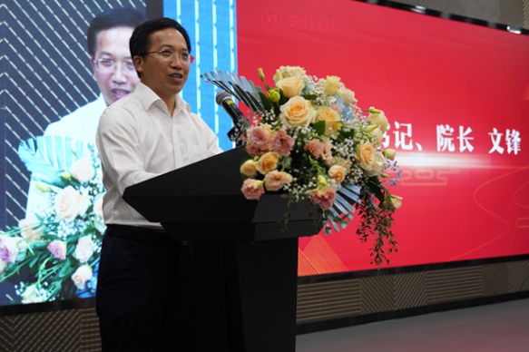 文锋作讲话,他对智慧教学空间的开课和研究中心的顺利运行表示祝贺,向关心支持和参与教学空间和研究中心建设的师生和各界表示感谢。进一步肯定了学院近年来在促进信息技术与教育教学深度融合方面取得的新进展,在打造、建设和使用全景教室、智慧教室过程中取得的新成效。