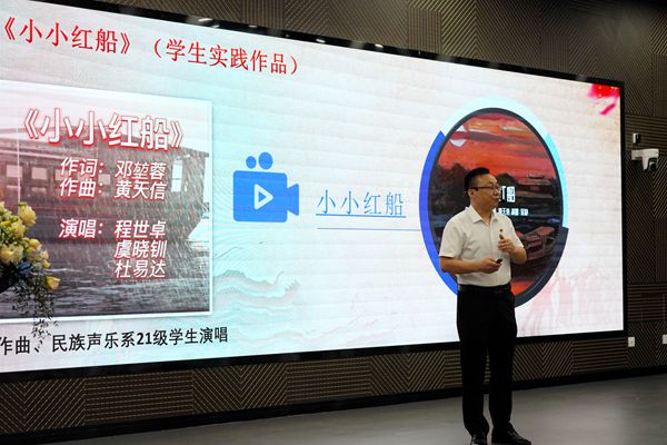 来自实验艺术学院徐静平老师、马克思主义学院朱社员老师、声乐与歌剧学院白居业老师、民乐系宋梓滢老师、夏毅老师、音乐基础教育部陈思桥老师及其团队现场进行了“铸金计划”的示范课堂展示。课堂教学结合智慧教室201沉浸式的设计理念,将高科技手段与艺术完美融合,打造出了具有川音特色和科技气息的融合式魅力课堂。