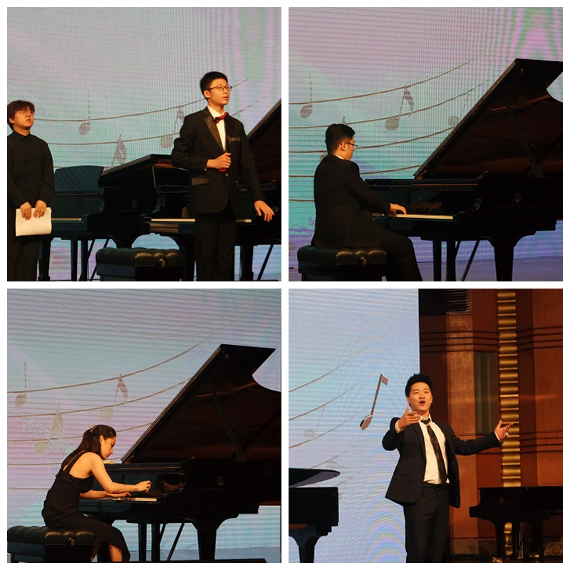 1.附初中三年级学生胡昶佑(右),演奏了钢琴协奏曲《门德尔松第一钢琴协奏曲 第三乐章》,指导教师:周彦;第二钢琴演奏(左)罗昭胤。