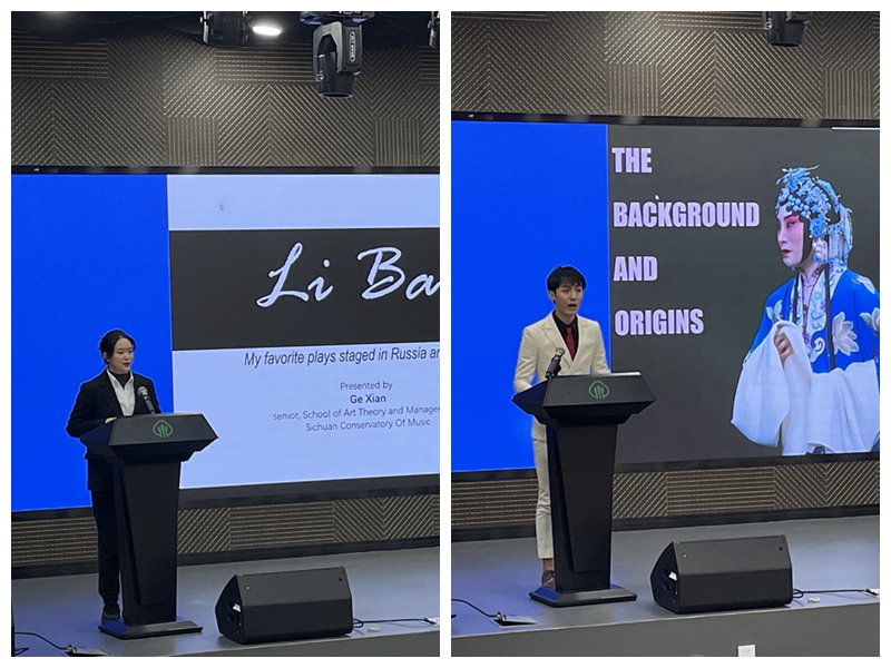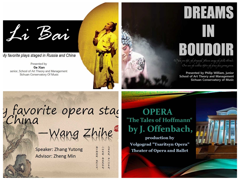 活动现场,来自伟德官网艺术学理论与管理学院、戏剧学院的学生代表与伏尔加格勒学生代表分别介绍了中俄两国多个经典剧目,涵盖传统戏剧、歌剧、现代话剧等多种艺术形式,内容不仅有剧目情景分享、背景分析、演出场地介绍和推荐理由等,还对彼此主题报告进行点评与研讨。交流形式更加丰富,学术氛围更加浓厚,是学生国际交流的一次新尝试,也是后疫情时代学生学术研讨的一次创新。