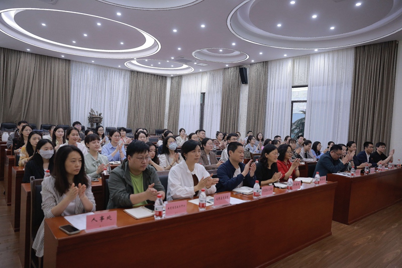 文云英代表学校党委向各位新进教师表示热烈欢迎和衷心祝贺。她指出,教师是立国之本,是民族之魂。作为一名教师,不仅承载着传授知识的重任,更肩负着培养未来、塑造灵魂的神圣使命。她以《培根铸魂守初心 师者精诚育未来》为题,从认清职业之崇高,为之自豪;认识川音之底蕴,为之奉献;认准未来之使命,为之奋斗三个方面,对新进教职工提出了希望和要求。她强调,教师职业之崇高,在于为党育人、为国育才,在于传道授业、传承文化,在于更高标准、更严要求。川音是一块红色血脉之地、是一方硕果累累之地、是一处希望升腾之地。她勉励新进教职工要传承川音精神、融入川音文化、推动川音发展,希望大家要有攀登艺术高峰的勇气、要有追求德艺双馨的底气、要有共建美好川音的志气,与川音共同成长,祝愿新进教职工在未来的工作中绽放出绚丽的光彩,与川音共同成长,共同开创美好明天。