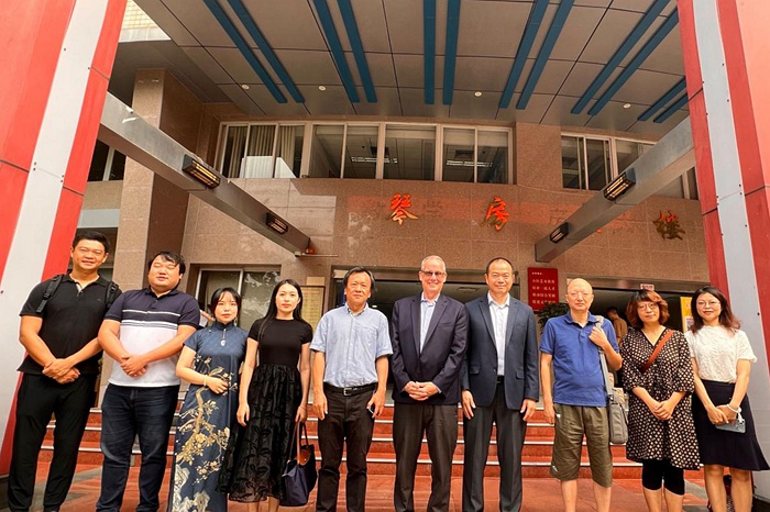 学校国际合作交流处处长陈熹陪同来访团一行参观了校园并介绍学校学科建设情况。