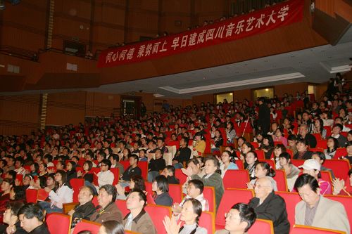 2007年10月13日晚,我院大音乐厅座无虚席,由西安音乐学院和我院主办的“经典新韵”民族交响音乐会在这里举行。西安音乐学院党委书记、院长翟志荣,纪委书记史军胜,党办、院办、干部人事处、财务处等部门负责人;我院领导及各相关职能部门负责人、我院部分师生观看了音乐会。