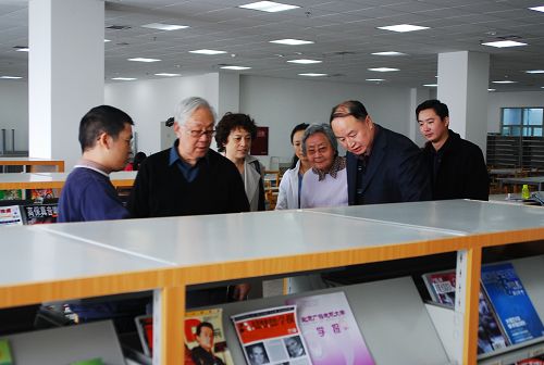 学院党委副书记、管委会主任彭建辉同志热情接待了于教授一行,并陪同参观了图书馆、国际演艺学院、舞蹈系、美术学院,观摩了部分院系的教学,了解了新校区学科建设、发展规划、教学成果等情况。
