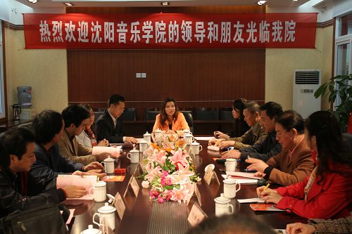 2007年10月19日上午,沈阳音乐学院的领导朋友们来我院考察学习,交流座谈会在我院行政楼第三会议室举行。沈阳音乐学院党办、人事处、总务处、离退休办公室等相关部门负责人参加了会议。我院党委副书记文云英以及党办、组织部、宣传部、学生处、附中、团委负责人参加了会议。