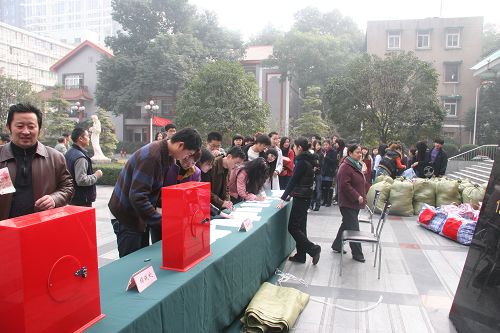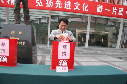 11月23日,我院“送温暖、献爱心”捐助活动在琴房大楼前举行。院领导出席了捐助活动并率先捐款。各党总支、各系(院)师生也当场捐献了物品。