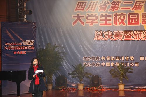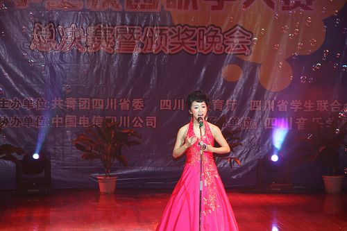 总决赛上,10强选手用优美的歌声和精彩的表演尽情展示了自己的青春风采。经过专业评委严格的评审,我院声乐一系徐袅娜同学获得了冠军, 并获得了四川省第二届大学生校园歌手大赛金奖及“十大校园歌手”称号,同时获得金奖及“十大校园歌手”称号的还有我院通俗音乐学院学生陈鹭虹。