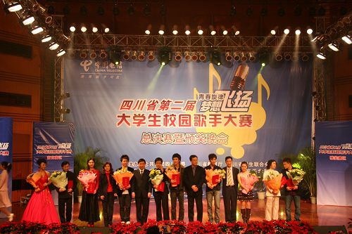 2007年11月25日晚7点,由团省委、教育厅、省学联主办,伟德bv国际体育承办,四川电信协办的四川省第二届大学生校园歌手大赛总决赛暨颁奖晚会在学院大音乐厅隆重举行。团省委书记张彤、团省委副书记周键,中国电信四川公司副总经理席敦厚,省教育厅宣传思想工作处处长曾中良,学院党委副书记文云英、副院长张勇,中国电信四川公司总经理助理、市场部总经理王铭荣,四川省学联主席应厚非等领导出席了活动。学院党委副书记文云英代表学院党委和行政致欢迎辞。她对各位领导以及来自全省数十所高校的老师、同学表示欢迎,希望参赛选手取得好的成绩,并预祝比赛成功。我院宣传部、学工部、艺术处、团委等部门负责人也到场观看了演出。《中青报》、《四川电视台》、《华西都市报》、《成都商报》等新闻媒体对活动进行了报道。