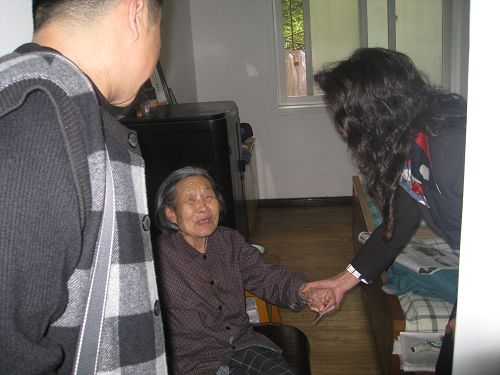 在困难教职工李友莲家里,由于李老师已年过九旬,行动极其不便,文主席弯下腰长时间得紧紧握住她的手问寒问暖,嘱咐她保重身体,注意休息。劳模们看到学院领导在百忙之中还抽出时间专程亲自登门拜访,送来真挚的问候与祝福都激动不已,感动万分,连声道:“谢谢,谢谢!感谢学院领导和组织的关心”。