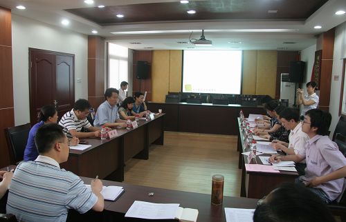 敖昌群院长介绍我院档案工作情况,并从档案的收集、管理、利用三方面对档案工作进行了汇报。档案馆负责人陈建伟向专家组按照省一级标准评分表的项目进行详细的自评汇报,并用PPT幻灯片进行了演示。