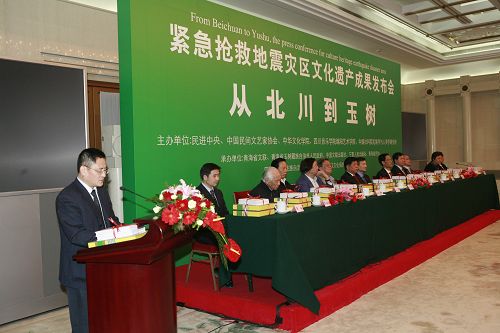 会上,还向北川县代表捐赠文化遗产抢救成果图书《羌学文库》向玉树州代表捐赠文化遗产抢救成果图书《中国唐卡艺术集成•玉树藏娘卷》。