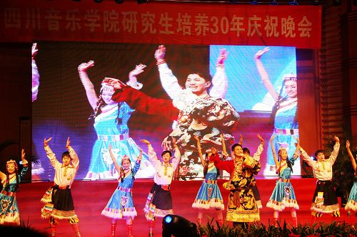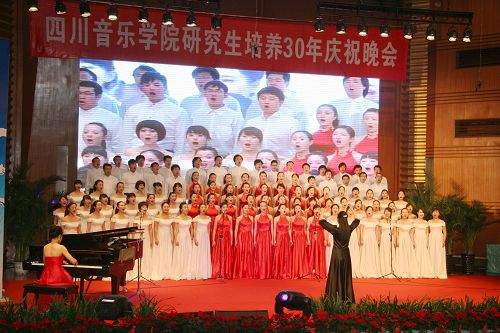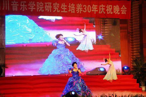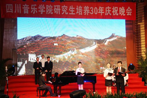 晚会在研究生百人大合唱《为祖国歌唱》中拉开序幕。整台晚会围绕“为祖国歌唱,为社会奉献”为主题,通过诗朗诵、器乐独奏、室内乐重奏、男女声独唱、歌伴舞、配乐现场作画等多种艺术表现形式,充分展示我院研究生教育的丰硕成果。
