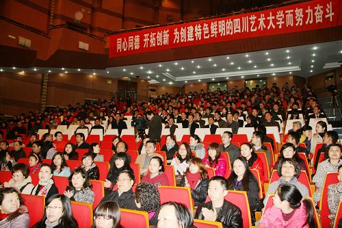 省委组织部副部长、省编办主任王川,省人大副秘书长曾平,团省委书记张彤,团省委副书记罗振华,省委组织部干部三处处长熊伟,省委组织部干训处周敏,来自在蓉30余所普通高校的大学生、研究生代表以及我院全体院领导、人大代表、政协委员、科以上干部、副高以上职称、硕士生、博士生代表近千余人聆听了报告。