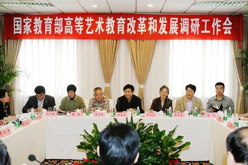 院长易柯教授以《高等艺术教育改革发展面临的主要问题和对策建议》为题作汇报,他从“学院发展的基本情况”,“发展中面临的主要问题”和“希望”三个方面发言。他说,我们从实践中感受到高等艺术教育发展的重要性和迫切性,同时确也遇到了一些瓶颈问题,如学科门类的设置、分类管理以及学位授予改革等。我们迫切建议要合理利用高等艺术教育的优质资源,在学位建设、招生层次上进行分类管理,在高校设置上要区别对待,突出特色。要结合我国实际,又要有国际视野,培养适应和促进社会经济文化发展需要的艺术人才,争取建设一批在国际上有特色,有影响的高等艺术院校。