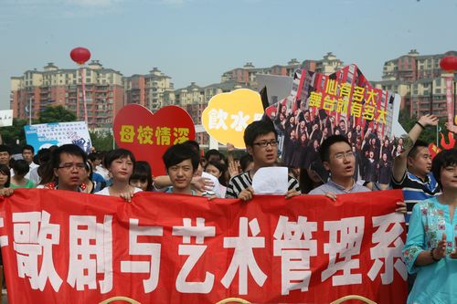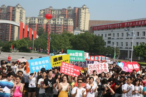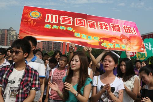 毕业典礼在全场齐唱《祝福歌》落下帷幕。现场许多学子和家长激动地掉下热泪,相互拥抱,留下了一张张难忘的合影。同学们自发打出“川音,谢谢您”、 “老师,我们爱您”、“母校情深”、“四年让我接受考验、四年让我收获了希望!”等横幅表达对母校和老师的感恩之情,大家互道祝福,相约未来。