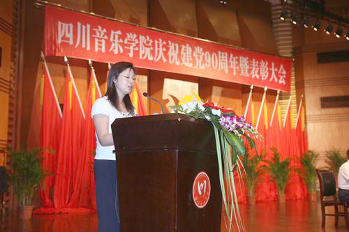 先进党组织代表钢琴系党总支书记王雁教授发言。她满怀激情地说,在这个举国欢庆的日子里,回忆90年来中国所发生的翻天覆地的巨变,在红歌声中、在创先争优活动中,我们真实的感受到党的辉煌历程,没有中国共产党的正确领导,就没有今天中国的繁荣富强。国家的强盛,带来了科技的进步和教育的发展。伟德bv国际体育也迎来了历史上最辉煌的今天。作为川音的基层党务工作者,我们要重视党员师生教育,树立远大理想,创造性地开展党建工作,加强理论学习,提高对党的认识,将政治思想工作与学术研究、创作表演、科学管理很好的结合起来,充分发挥党组织的政治核心作用,为实现“为祖国歌唱,为社会贡献,建艺术高地,走时代前列”,做出自己应有的贡献。