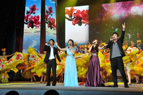 当歌声响起,当舞蹈跳起,背景大荧幕上,播放着汶川人民在送别援川人员时的场景,有老妇人与援川的年轻人相拥,有汶川青年人举着"广东汶川山水相连"的横幅。穿着汶川少数民族服装的人们站在舞台上,向广东人民鞠躬致谢,"感恩永不忘"五字赫然写在荧幕上。