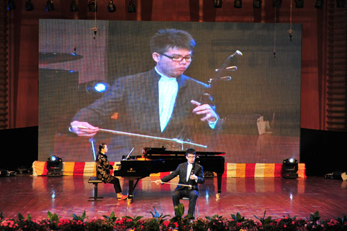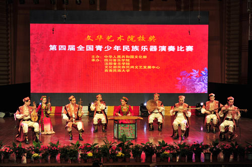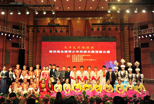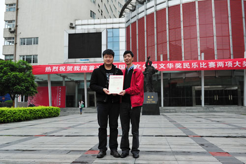 我院民乐系研究生陈冉使用学院研制的十孔笛吹奏的《阿诗玛叙事诗》(作曲:我院院长易柯教授、民乐系主任易加义教授),受到评委一致好评,获得吹奏乐组最高奖——演奏奖。我院民乐系研究生晏景晟同学用加键方笙和加键传统笙,以《第一键笙狂想曲》(作曲:我院文化艺术处处长邵春良教授),摘得吹奏乐组最高奖——演奏奖。 本次“文华奖”大赛是为贯彻党的十七届六中全会精神,推动我国民族文化大发展、大繁荣的一项重要赛事。是为了弘扬我国优秀民族音乐文化,促进我国民族器乐艺术的普及发展,传承少数民族乐器与乐种,鼓励乐器演奏艺术的创新和发展,发现、选拔优秀青少年民族乐器演奏人才,全面展示民族器乐教学、表演与实践的最佳平台。也是我国艺术院校民族乐器演奏比赛的最高级别奖项。据悉本次比赛来自内地37所艺术院校的选手295人,组合、合奏队伍33支进入复赛,而只有分数在前六位的选手才能获得文华奖最高殊荣——演奏奖。高手云集,竞争异常激烈。能夺得此项大奖实属不易,弥足珍贵。