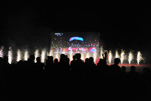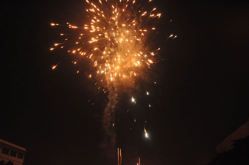 校园沸腾了。本部广场璀璨礼花热情绽放,新区广场烟花火炮闪耀夜空。师生们沸腾了。他们欢呼雀跃,纷纷相拥祝贺。
