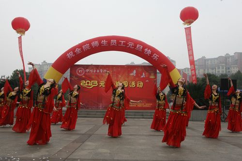 游园活动开始前,学院领导致辞:过去的一年,是我们深感自豪的一年。全院呈现出了团结奋进、昂扬向上、心情舒畅、工作愉快、事业发展的大好局面。我们认真贯彻执行党的教育方针和政策,坚定社会主义办学方向,遵循艺术教育要促进和适应社会、经济、文化发展需要的规律,与时俱进、不懈探索。全校师生员工积极响应学院党委提出的以“坚持内涵发展,树立国际视野,办出特色水平”的工作总要求,坚持“为祖国歌唱、为社会服务,建艺术高地、走时代前列”的办学理念;发扬“乐于奉献、勇于展示”的川音精神。切实加强党的建设,勇于承担社会责任。一年内,我们先后获得国家“文华奖”5项、“桃李杯”、“荷花奖”金银奖4项、全国《毕业歌》大赛总冠军、美术设计“红点奖”4项、“IMF”奖两项、哲学社学一等奖两项。这些成绩既是令人瞩目的,也是空前的。是我们坚持文化自觉,树立文化自信,创新文化发展新理念,努力践行办学理念的结果。是全校师生努力学习、努力工作、努力奉献的结果。日月光华,旦复旦兮。新的一年,我们将乘势而上、振奋精神、齐心协力,认真学习贯彻党的十八大精神,把握学校发展的阶段性特征,发扬成绩、总结经验,找出差距,再接再厉。在提高学习能力、提升创新能力、构建和谐能力、坚持执行能力上多下功夫。始终坚持“三上三感”的工作取向。继续加强“三风”建设。为共同建设一个环境优美、气氛和谐、快乐向上、成果丰硕、充满期待的四川艺术大学而不懈努力!并祝全校师生员工朋友们新年新气象,新年新收获,新年好心情!祝师生员工朋友们工作顺利、学习进步、全家快乐!